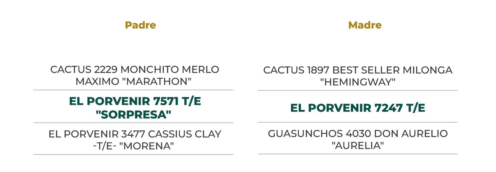 Un colorado que destaca por su acebuzamiento, pelo corto y excelente desplazamiento. Su respaldo genético es de alto nivel: su madre, la 7247, hija de Aurelia, fundadora de nuestras líneas más sobresalientes en colorado. Y por padre nada menos que “Sorpresa”, el toro del momento, que fusiona calidad fenotípica sobresaliente con DEPs destacadas y solvencia ya probada. Una combinación que asegura futuro.